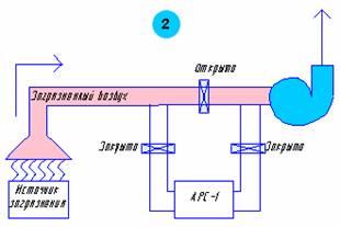 2- Система вентиляции с очистителем воздуха "АРС - Аэро" в режиме десорбции.