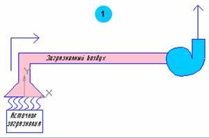 Схема встраивания установки очистки воздуха в действующую систему вентиляции