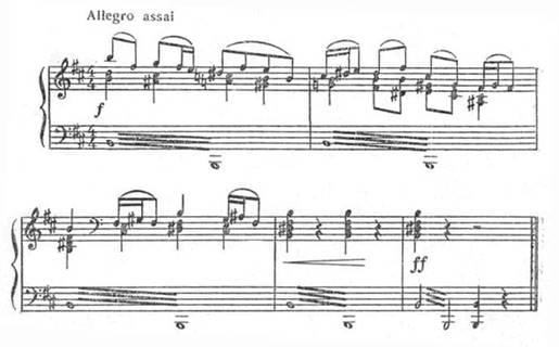 Образ героя створюється напруженістю гармонічного розвитку, маршовістю мелодії, своєрідним фактурним малюнком.