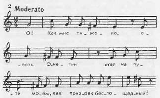 И, наконец, музыка, речь особого рода, тесно связана с обыкновенной словесной речью. И, наоборот, можно сказать, что наша разговорная речь есть своего рода мелодия: разве не слышим мы в ней повышений и понижений, ускорений и, замедлений, отдельных фраз, разграниченных между собой цезурами, — то есть всего того, что мы слышим в музыкальной мелодии? Более того, самые выразительные интонации словесной речи — такие, как интонация вопроса, восклицания, жалобы, — оказали сильное воздействие на мелодию. Как ясно слышна, например, интонация грустного вопроса во вступлении к арии Ленского из оперы Чайковского «Евгений Онегин».