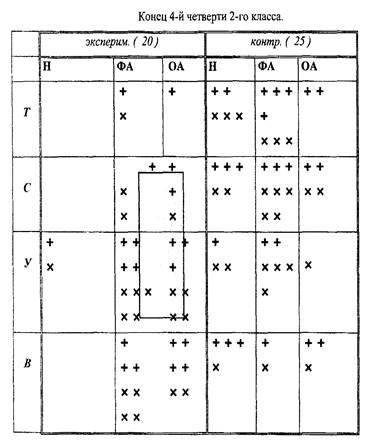 Н – неадекватно; Ф – формально адекватно; ОА – образно адекватно; Т – ориентация на товарищей; С – ориентация на себя; У – ориентация на учителя; В – ориентация на внутренние переживания.