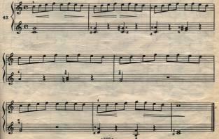 пассажи, аккорды, двойные ноты, арпеджио и т.д.. Важно, чтобы ребёнок осмысленно относился к тексту, видел эти аппликатурные формулы, старался вовремя увидеть, какой пальчик нужно повернуть.