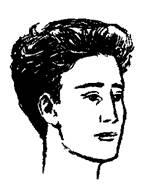 Затем отделяем челку и бачки. Челку стрижем 2-3-я прядями по прямой линии выше бровей. Бачки подстригаем по желанию клиента. Можно оформить короткие треугольные бачки или оставить длинные, сильно прореженные. По кромке волос отделить прядь, обрамляющую лицо, и подстричь (рис. а).