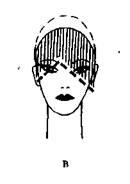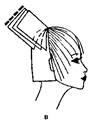 Стрижем челку, отделяя ее дугообразным пробором, и подстригаем волосы боковой зоны, оставляя длину средней между фронтальной и макушечной зонами, (рис. б).