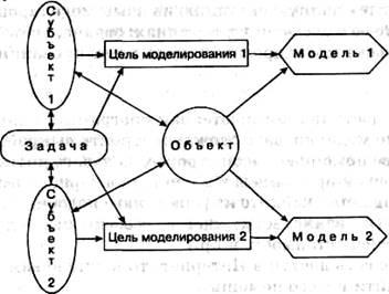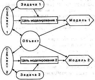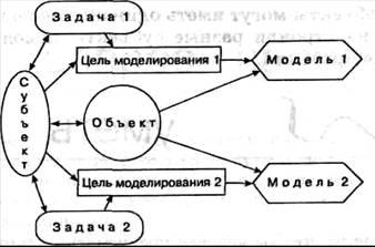 Для одного объекта один субъект может построить несколько моделей, если он решает разные задачи, приводящие к разным целям моделирования (рис. 11).