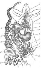 Тонкий кишечник — сильно розвинений і поділяється на дванадцятипалу, порожню та клубову кишки.