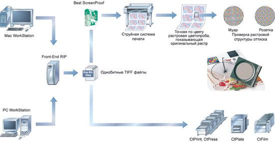 Рис. 2. Принципиальная схема работы цветопробной системы, построенной на основе растрового процессора Best ScreenProof