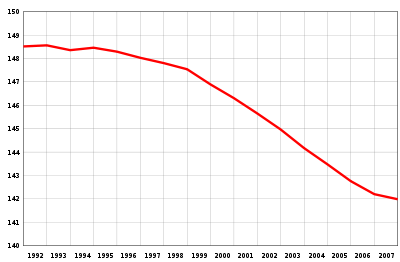 Данные приведены: за 1989 г. - по переписи населения на 12 января, за 1993, 1996, 2001-2008 гг. - оценка на 1 января соответствующего года.