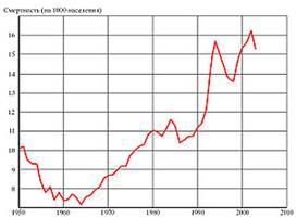 Смертность среди российских мужчин в трудоспособном возрасте в 10 раз выше среднеевропейского показателя, а женщин— в четыре раза. Детская смертность в России вдвое выше, чем в среднем по Европе и составляет 9.4 умерших до года на 1000 родившихся живыми ( данные Министерства здравоохранения и социального развития на 2007 год).