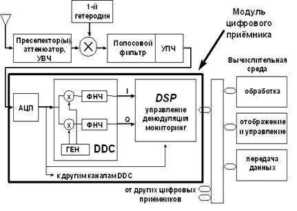Обобщенная схема цифрового радиоприемного устройства представлена на рисунке 1.