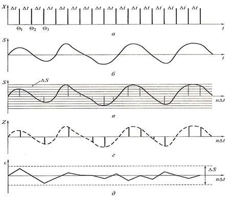 в) дискретизированный сигнал;