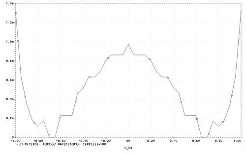 Рис. 5.14. Отклонение от линейности линеаризованного смесителя (в %)