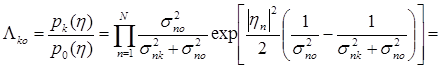 - отношение правдоподобия зашумленного портрета (сигнала) К-го
