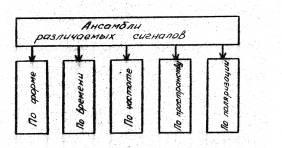 однородных сигналов, должны отличаться по какому-то параметру или признаку - форме, времени, частоте, пространству, поляризации (рис. 1):