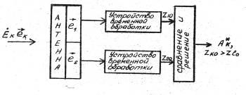 класса. Это правило решения прежде всего убеждает в том, что число проверок сокращается до числа проверяемых гипотез М-1. Во-вторых, это правило решения убеждает в преемственности задач обнаружения и распознавания. В самом деле, левая и правая части неравенства (правила решения) свидетельствуют о том, что вначале необходимо осуществить оптимальную пространственно-временную и поляризационную обработку каждого элемента портрета (n
