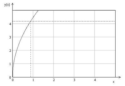 Проведем расчет радиуса выпуклой части зеркала. Для этого строится график функции радиуса раскрыва от расстояния у(x) =(4f·x) 0.5, где f– расстояние до фокуса. В результате получен график представленный на рисунке 12.