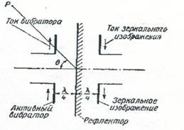Воспользуемся принципом зеркального изображения и заменим действие металлической поверхности контррефлектора пассивным вибратором, расположенным на расстоянии от активного и несущим ток, сдвинутый по фазе на 180° относительно тока в активном вибраторе.