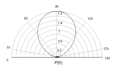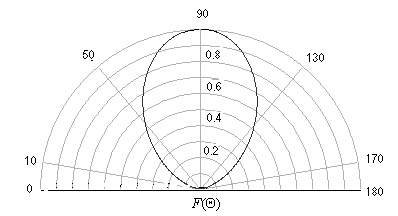 Тогда в любой точке пространства поле будет определяться как сумма полей обоих вибраторов и может быть рассчитано умножением диаграммы одиночного полуволнового симметричного вибратора F1(θ) на множитель решетки F2(θ):
