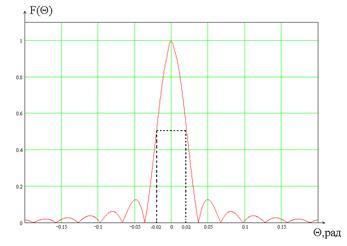 Где θ – угол в горизонтальной плоскости, отсчитываемый от нормали к щели.