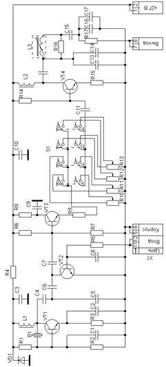 ) собран по осцилляторной схеме с кварцевой стабилизацией. С выхода автогенератора высокочастотное напряжение подается на буферный каскад, представляющий собой эмиттерный повторитель (транзистор VT