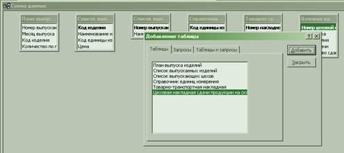Вводим в созданные таблицы произвольные данные. Затем выполняем создание схемы данных. Для этого выполняем команду меню "Сервис - Схема данных". В появившемся окне поочередно выбираем все таблицы и нажимаем кнопку "Добавить" (рис.3.3).