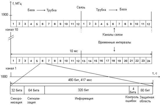 Оставшиеся 12 бит в прямом канале не используются (резерв), а в обратном канале выполняют функцию защитного интервала, в течение которого не передается никакой полезной информации.
