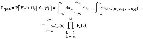, k=1..M. Тогда вероятность правильного решения по алгоритму максимального правдоподобия можно записать