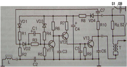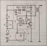 Цепь R3-C1 осуществляет фазосдвигающие функции, компенсирующие фазовое запаздывание протекания тока в базе транзистора VT1 из-за значительной индуктивности обмотки датчика L, чем снижается погрешность момента искрообразования.