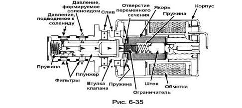 В системах управления с электронным блоком управления для регулирования давления в основной магистрали используются PWM-соленоиды или по-другому DutyControl-соленоиды (рис.6-12).