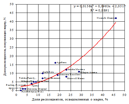 2. Потребительские предпочтения находятся в полном соответствии с качеством кофе: потребители предпочитают покупать более дорогой, и соответственно более качественный кофе известных и популярных брендов. Пьют кофе в среднем 1-2 раза в день, наиболее популярной маркой кофе является Nescafe. Предпочтение отдается средней по размеру упаковке (100 г).