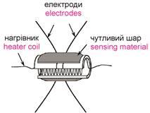Особливої уваги заслуговують двокомпонентні АЧЕ, які дають змогу одночасно визначати наявність в повітрі двох газів – метану та оксиду вуглецю. В основу їх роботи покладено той факт, що, як видно з рис. 1.4 оптимальні робочі температури газочутливого шару, необхідні для визначення оксиду вуглецю і метану, суттєво відрізняються. При робочій температурі приблизно 400 °С сенсор реагує на метан і практично не реагує на оксид вуглецю, а при робочій температурі приблизно 100 °С – навпаки.