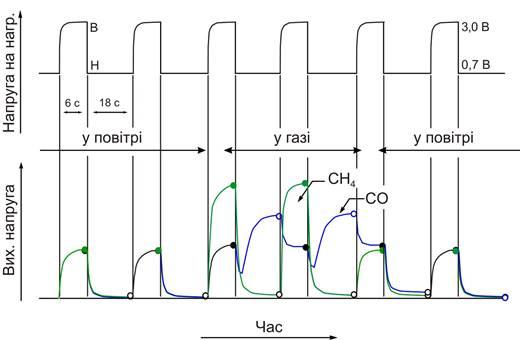 Останнім часом з’явились АЧЕ, що працюють в режимі циклічної зміни температури, при якому робоча температура змінюється періодично між двома специфічними станами: високою температурою (В) – для очищення поверхні напівпровідникового газочутливого шару АЧЕ і низькою температурою (Н) – для детектування певного газу.