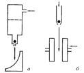 Інша група дискретних процесів класифікується як метод „мелена і ковадла” (hammer and anvil) (мал. 3.1б), в якому розплавлена крапля металу розплющується рухомими назустріч один одному поршнями. В результаті отримують фольгу правильної форми з товщиною від 20 50 мкм. Швидкість охолоджування при такому методі охолоджування складає 106 – 107 К/с. Проте такий гарт є в деякій мірі невідтворним із-за труднощів, пов'язаних з особливостями експерименту.
