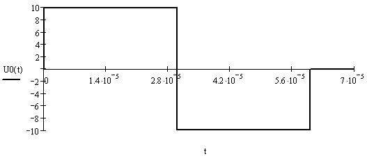 на вход цепи источником напряжения подан импульс (рисунок 1) с амплитудой 10 В и длительностью 60 мкс., j
