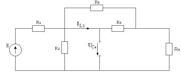 Начальные значения переменных состояния могут быть определены из анализа схемы до коммутации. Предполагается, что в схеме до коммутации существовал установившийся режим постоянного тока, что позволяет представить схему в виде: