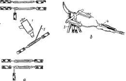 З кінця кожного із з'єднуваних проводів, які підлягають паянню, видаляють ізоляцію, ретельно зачищають їх сталевою щіткою або ножем і з'єднують внапуск подвійним скручуванням так, щоб ворився жолоб (рис. 15, а). Потім нагрівають проводи паяльною лампою або гасовим пальником до температури, близької до температури плавлення алюмінію (860°С), і з натиском натираюсь паличкою припою ділянку з'єднання, щоб зняти тугоплавку плівку оксиду, яка утворилася на поверхні проводу припій, що за плавиться при цьому, повинен заповнити жолобок між двома проводами. Пропаявши провід з одного боку жолобка, операцію паяння повторюють на його другому боці. Ділянку з'єднання протирають чистою ганчіркою, змоченою в бензині, а потім вкривають шаром гліфталевого або полівінілхлоридного лаку і ізолюють липкою стрічкою Ізольовану ділянку з'єднання вкривають шаром лаку.