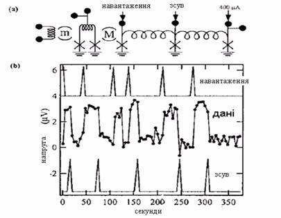 , і зчитування SQUID, що складається з переходів J7 і J8 і напруги на виході терміналу між ними.