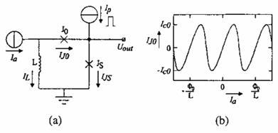 , тільки SFQ може існувати в цьому циклі після перезавантаження переходу в надпровідний стан і робить SFQ циркулюючого струму в Icir циклу. Рис.2. показує інше пояснення SFQ зберігання та випуску в надпровідних циклах. При постійному струмі зміщення Ib подається в надпровідникових петлях у тому числі переходу Джозефсона, майже всі нинішні переходи через індуктивність L в іншому рисунку (рис.2a). Тут, Ib менше ніж критичний струм Ic переходу. Якщо сигнал струму в подальшому використовується для з’єднання сумів, Ib