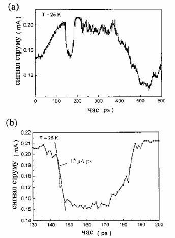 Рис.25 показаний один з результатів з 1-пс час затримки між кожною точкою відбору проб. Падіння структури близько 160 пс на рис.25a був переоцінюються в деталях і показано на рис.25b. На рис.25b, максимальна диференціальних час вимірюється сигнал в 12 /пс, який впав 60 з 5-пс проміжок часу з 2,5µA - чутливістю по струму.