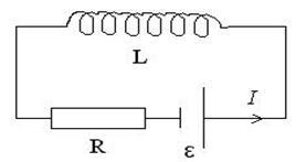 Розглянемо замкнуте коло, в якому є резистор R, котушка L і джерело струму (рис.7)