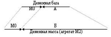 Рисунок 1.1 - Взаимосвязь денежной базы и массы денег в обращении