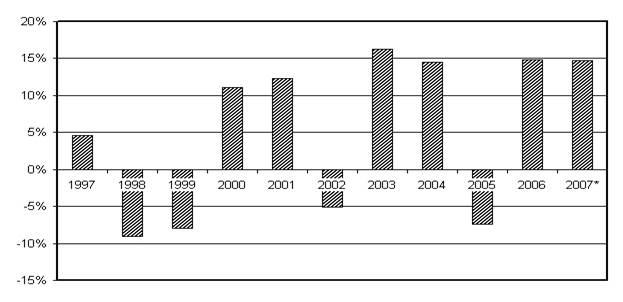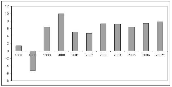 Рисунок 1. Темпы прироста ВВП России, 1997–2007 гг. (в % к предыдущему году) .