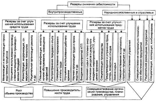 - это количественно измеримые возможности экономии затрат живого и овеществленного труда. Общая классификация резервов снижения себестоимости продукции приведена на Рис.6.