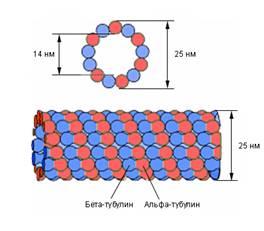 Микротрубочки представляют собой трубчатые образования, состоящие из белка тубулина. По ним, как по рельсам, движутся органеллы от одного участка клетки к другому (другие белки прикрепляют органеллы к наружной стороне «трубы» и обеспечивают движение). Во время митоза они обеспечивают расхождение хромосом к полюсам клетки.