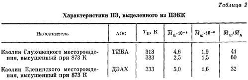 (2) и 8 (3) ПЭКК, полученных полимеризационным методом при 313 К и давлении этилена 1,0 МПа. Каолин Глуховецкого месторождения активировали ТИБА