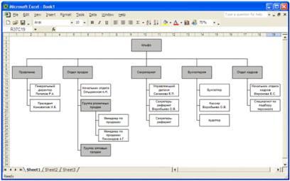 Фараон виводить в Excel структуру будь-якого елемента компанії у вигляді блок-схеми (Рис. 1.2).