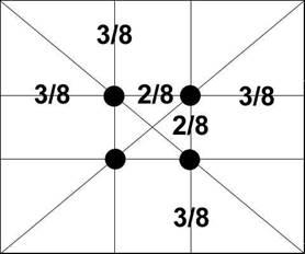 Ще в епоху Відродження художники відкрили, що будь-яка картина має певнікрапки, що мимовільно приковують нашу увагу, так звані зорові центри. При цьому абсолютно неважливо, який формат має картина – т горизонтальний або вертикальний. Таких крапок всього чотири, і розташовані вони на відстані 3/8 і 5/8 від відповіднихкраїв площини.