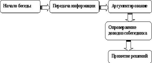 Аргументирование. Следующая фаза деловой беседы - аргументирование. В этой фазе формируется предварительное мнение, занимается определенная позиция по данной проблеме как со стороны инициатора беседы, так и со стороны собеседника.