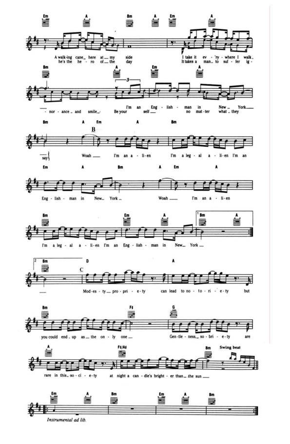 Но, пожалуй, самое необычное мы встречаем в гармонии композиции «EnglishmanInNewYork» - это то, что и часть А