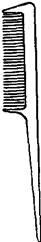 Расческа с тонкой длинной ручкой и частыми зубьями (ее называют «хвостик») – основная рабочая расческа. Ею удобно отделять пряди волос. Она может быть пластмассовой и металлической. Металлическую хорошо использовать для начеса, но при выполнении химической завивки и окрашивания волос ее применять нельзя, так как металл будет вступать в реакцию с препаратами для химической завивки и химическими красителями. Для стрижки можно использовать как пластмассовую, так и металлическую расчески.